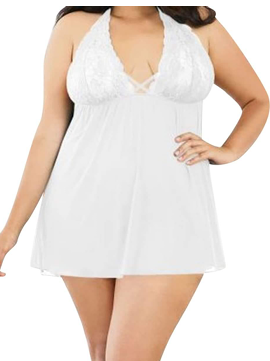 Babydoll tipo haltier, con detalle de encaje en busto, disponible en tallas extra.